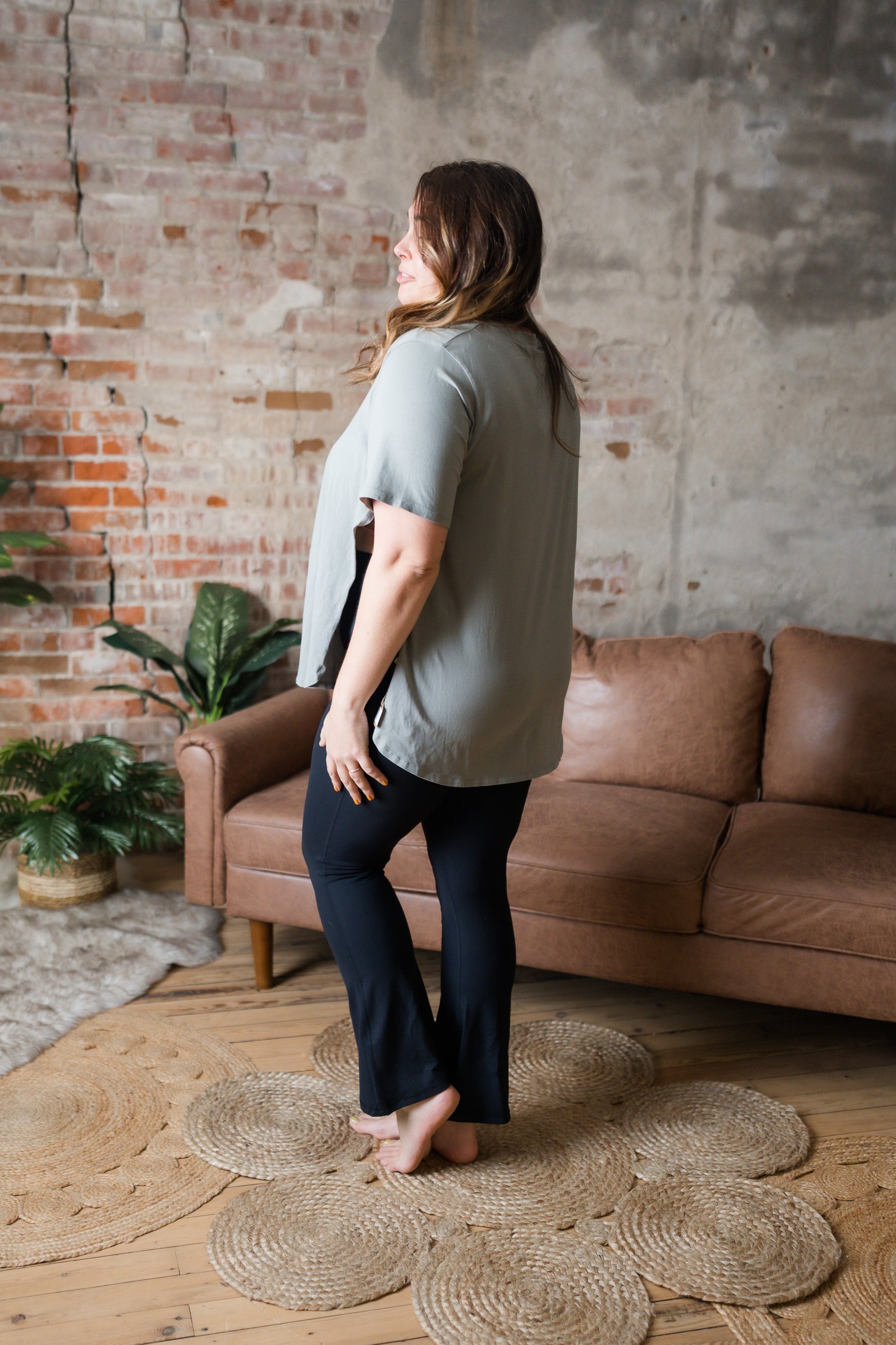 Plus size. These buttery soft leggings are perfect for everyday use. They feature a flared bottom and crossover waist. Super trendy style. These are a best seller!