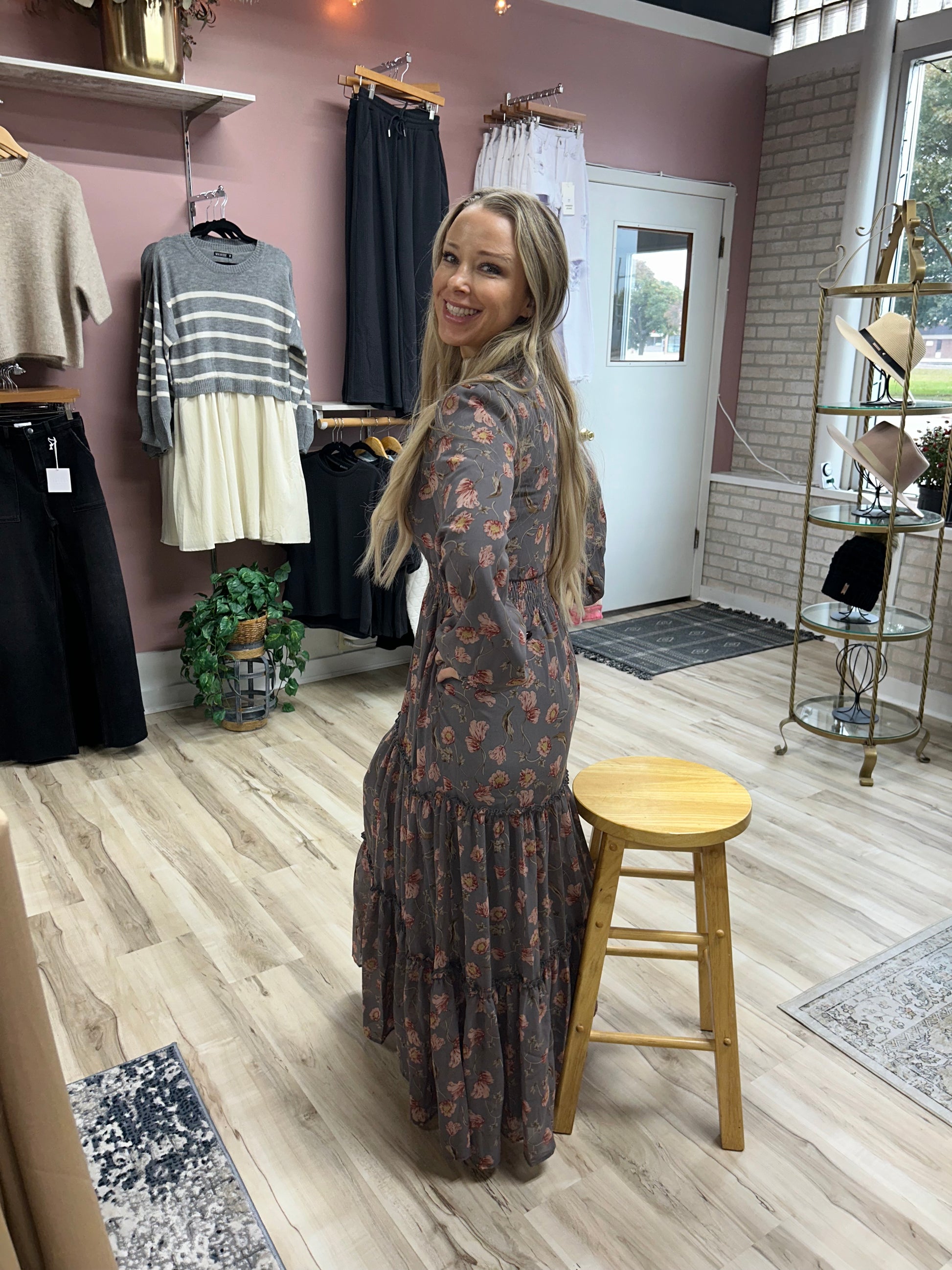 This flowy floral maxi dress brings all the romantic fall vibes. The smocked bodice flatters your shape while the tiered skirt moves beautifully with every step. Lightweight and breathable, it’s perfect for day-to-night styling.