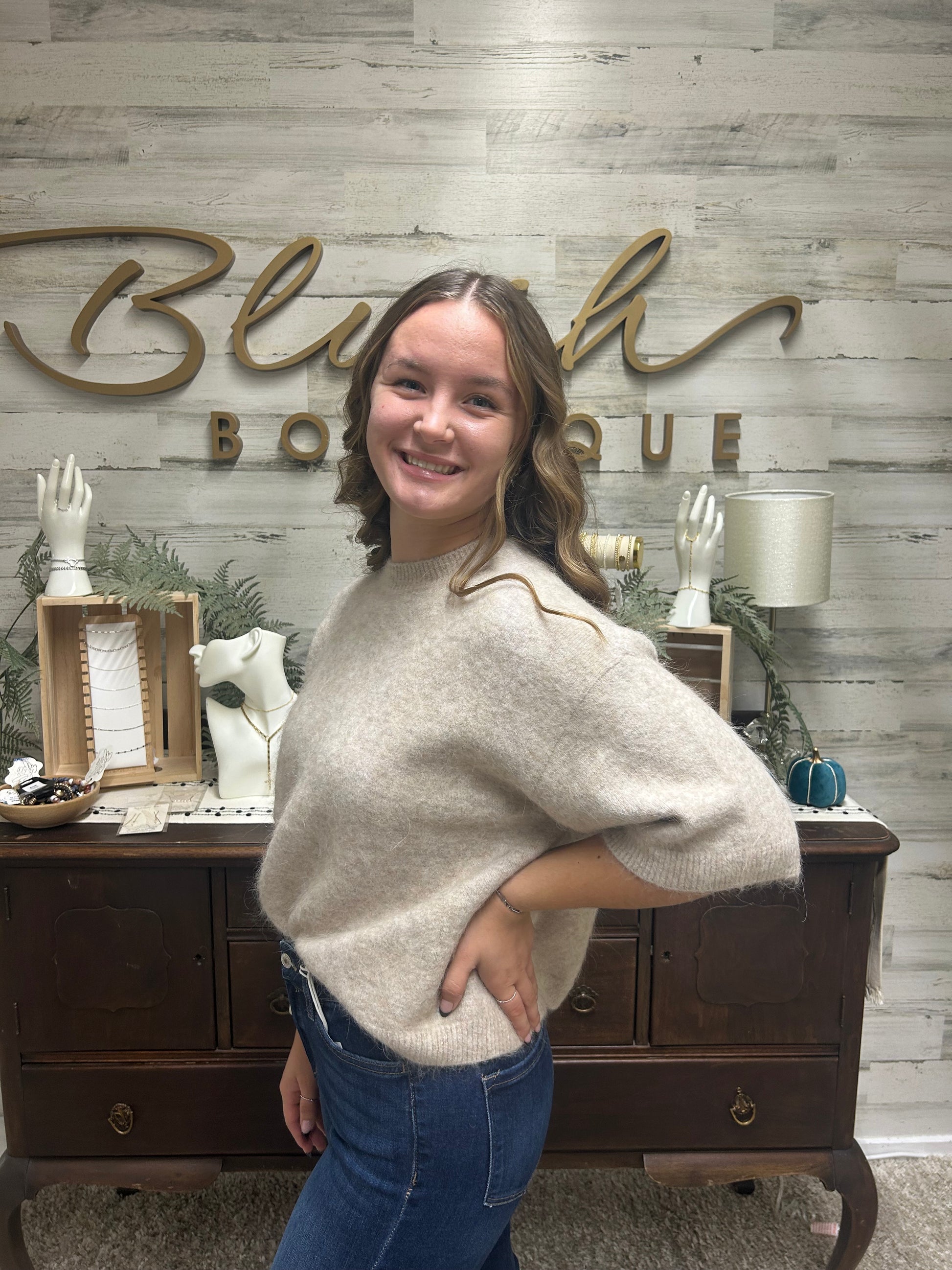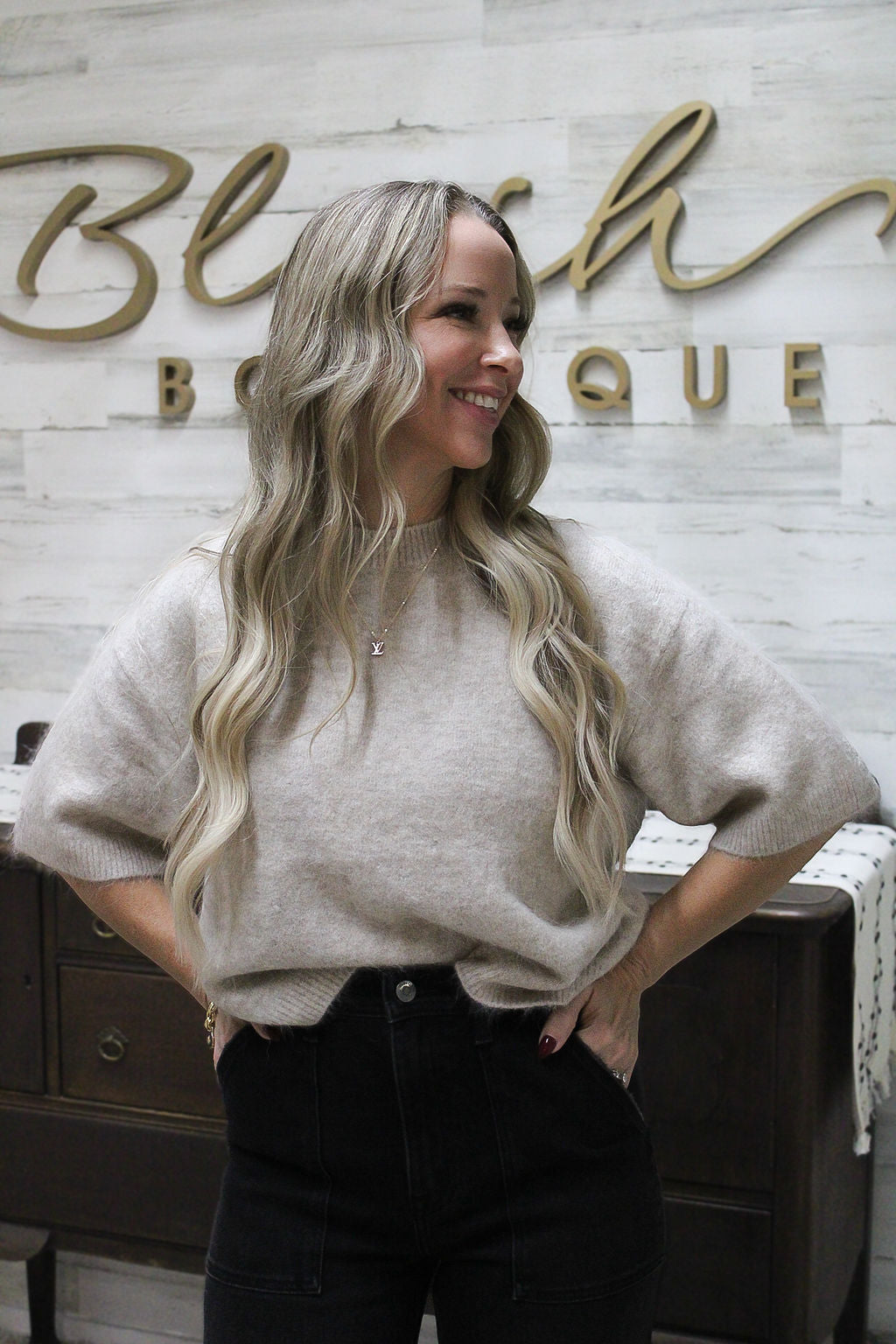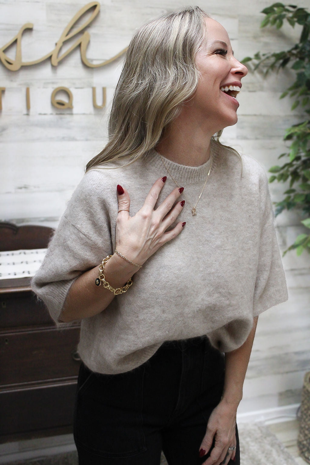The Pistola Evelyn Sweater blends effortless polish with cozy comfort — a modern neutral you’ll reach for again and again. Featuring a soft mock neck, drop shoulders, and relaxed short sleeves, this luxe knit drapes beautifully for an easy yet refined silhouette.