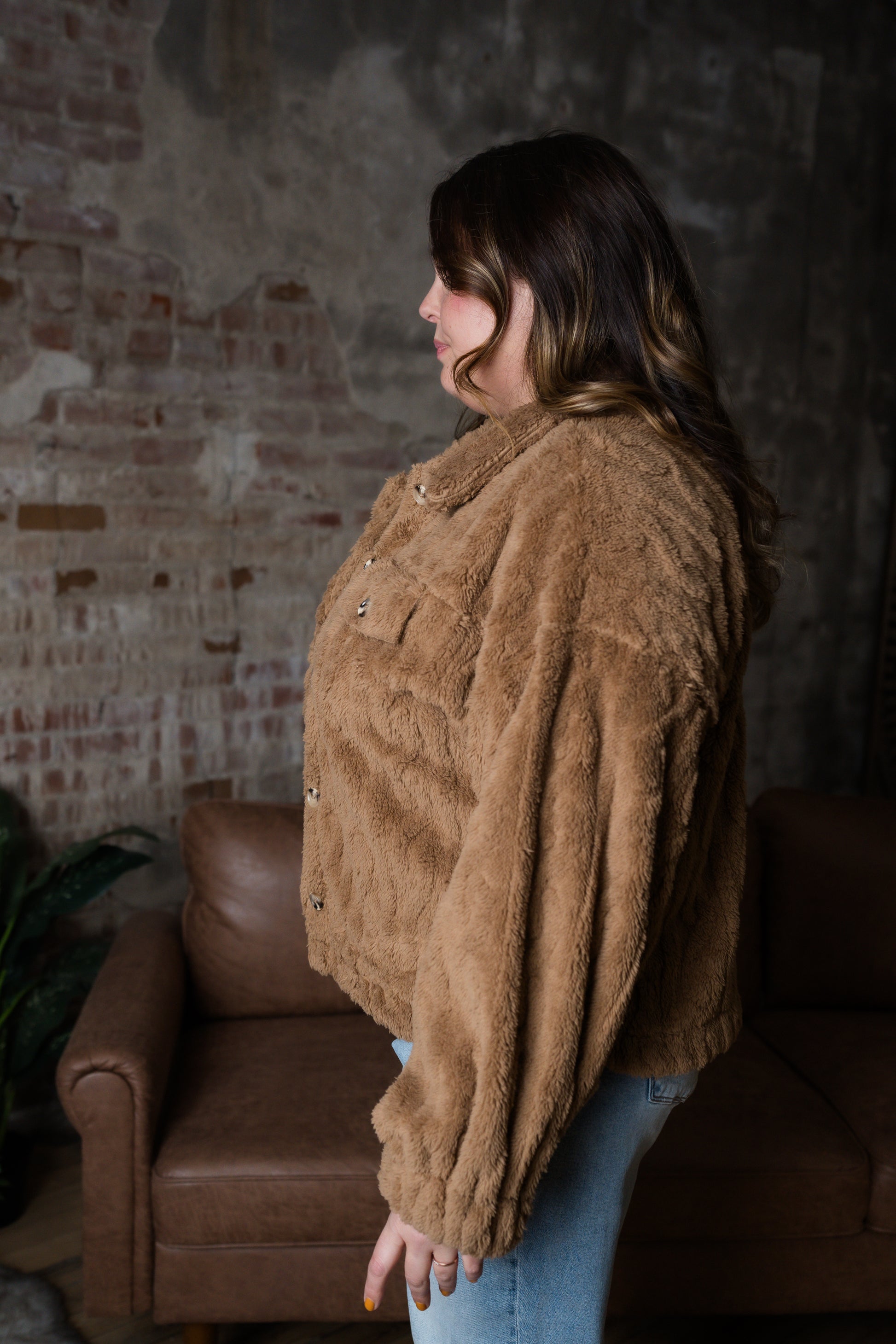 PLUS SIZE CABLE PATTERN FAUX FUR JACKET. 100% POLYESTER. Perfect for those crisp spring nights!