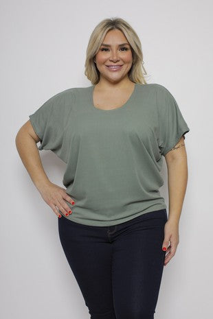 PLUS SIZE RIB KNIT ROUND NECK BATWING SLEEVE TOP